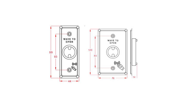 Radiant Touch-less switch is a IR sensor with waterproof & dust proof design & LED indicators. It is easy to install with NO/NC/COM Output. Touch-less Switch is the Best Choice for Access Control Systems. Radiant Touch-less switch is a satin finish with stainless steel brush finished face plate, suitable for a variety of doors. It is with simple & ultra-narrow design, refined and elegant. Its control is suitable for electrical control circuit such as doors, gates, locks anti-theft alarm, industrial control equipment and so on. User Friendly, touch for opening the door.