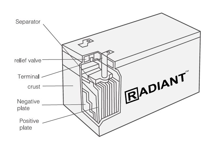 Radiant Valve - regulated sealed lead-acid battery is featured with high energy, long life, zero pollution, maintanence-free and safety. we adapt modern updated design, manufacturing process, advanced lead calcium electrode plate, super fine glass fiber separators and air-proof design.